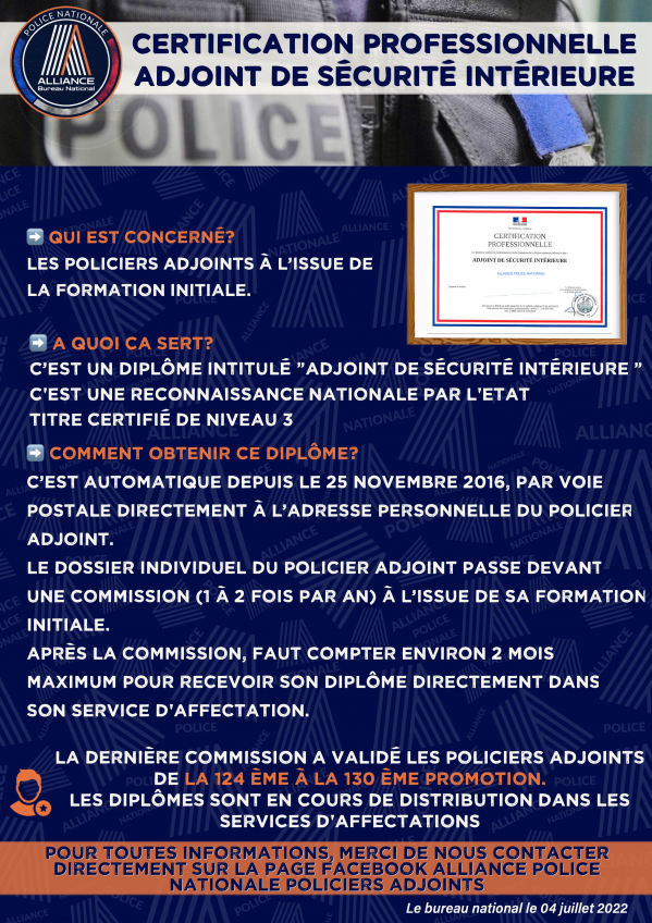 Certification professionnelle Adjoint de sécurité intérieure Publication : 4 juillet 2022 Lire la suite... Bureau National
